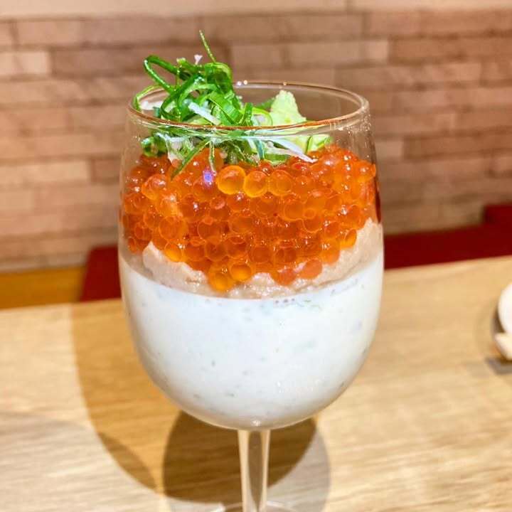 あおさ海苔を使ったしゅんち定番の自家製豆腐、カニミソ、いくらを使ったなんとも背徳的な逸品です笑