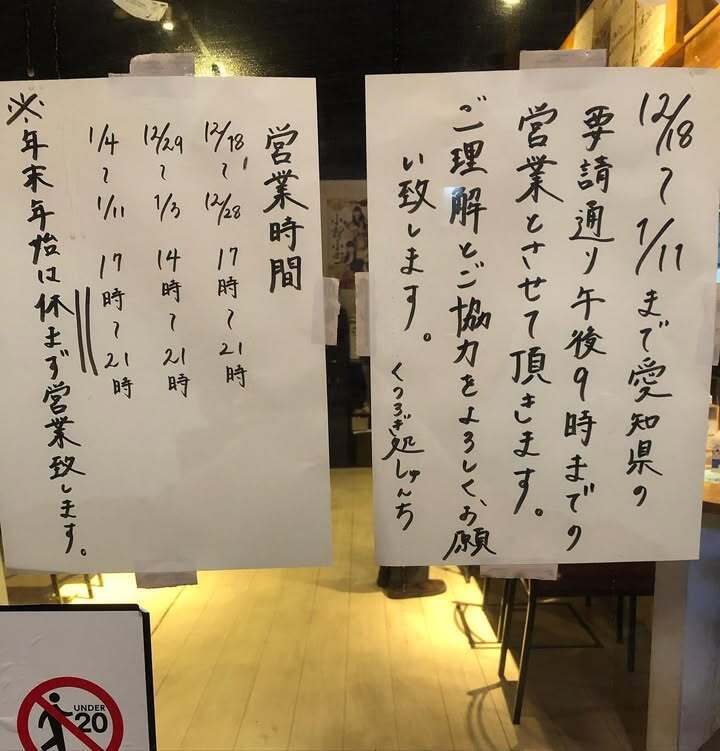 12月18日から1月11日までの営業時間です!!ご迷惑おかけしますがよろしくお願い致します😭
